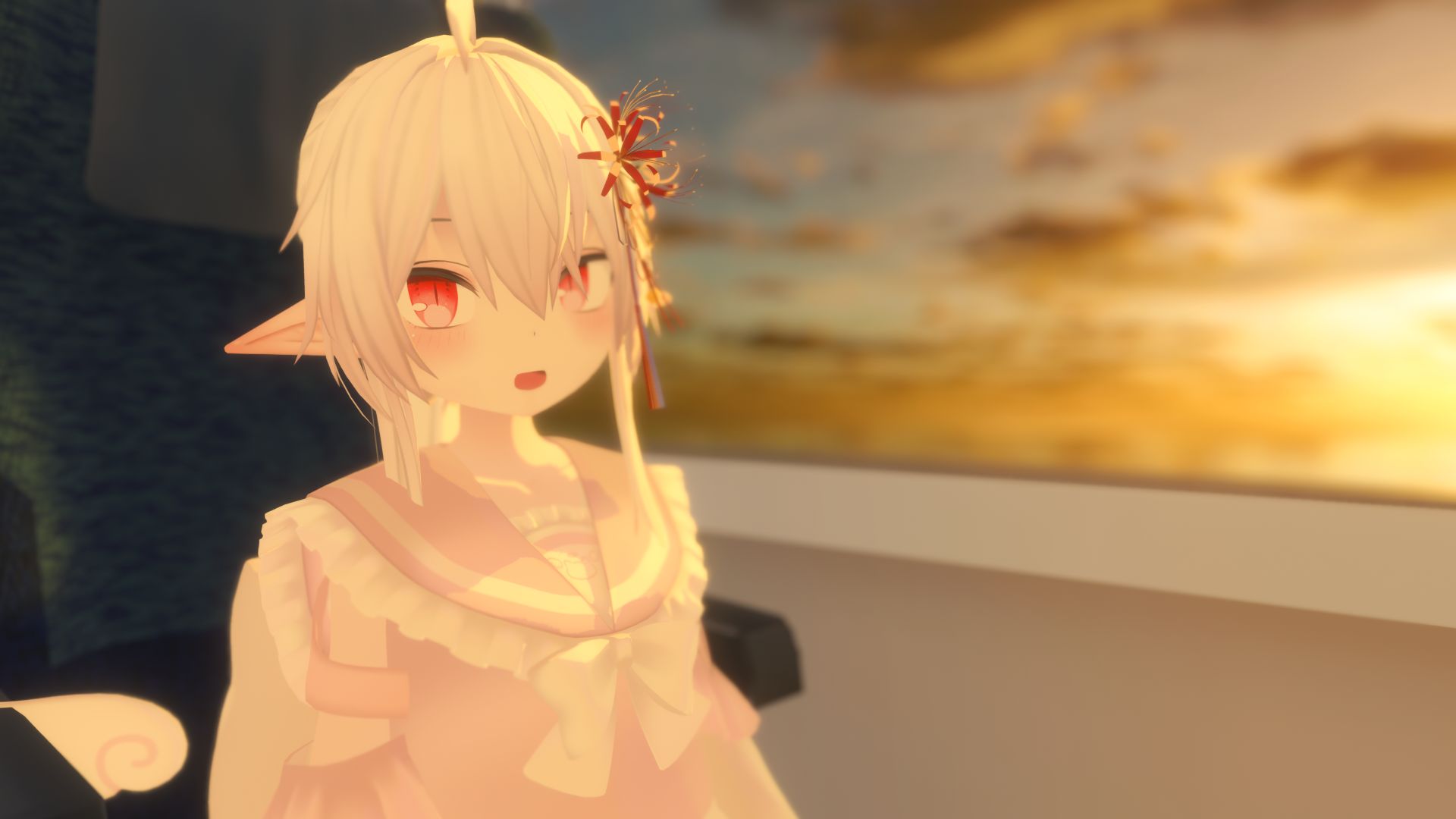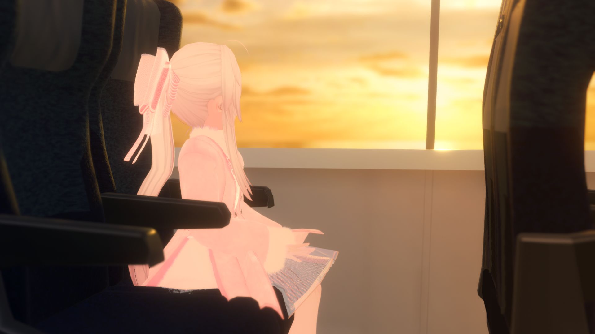 おしゃれをして遊びに行って、その帰りに少し疲れながら、綺麗な夕日を眺めて特急で帰るエルフなのです!