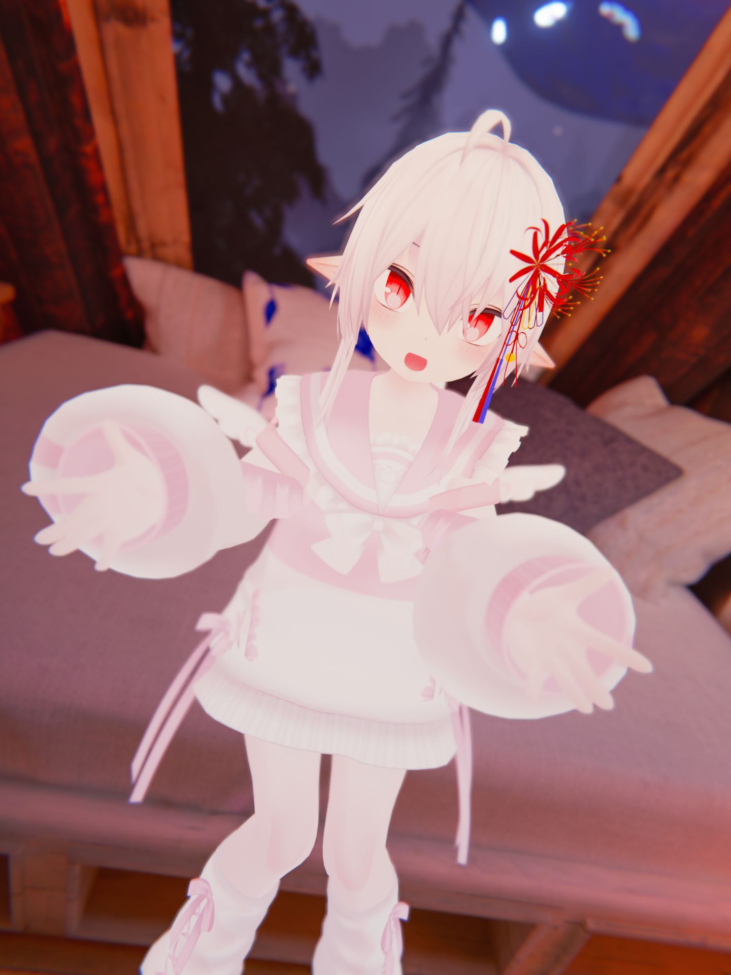 この衣装、可愛いのと部屋着っぽく使えそうだったので、朝の時間にもう少しだけ寝よ~って誘ってくるエルフを連想して撮ってみました~!